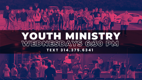 Our youth ministry meets every Wednesday at 6:30 p.m. There is a mix of bible study, small group, services and games. The youth ministry also offers a monthly event as well as youth camps, trips, etc. Our youth pastor Colby Duncan would love to help get students connected. Text 3143756341.