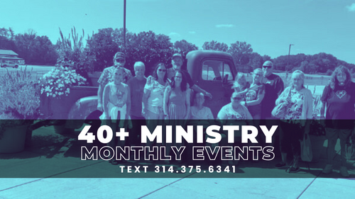 Ministries like our 40+ are less about age and more about spending time with others who share your life experiences. A young family talks about different things than someone who is having their kids graduate or leave the house. This ministry's events allow for you to build deeper relationships with people who are experiencing what you are in life. Joey and Darla Holloway help lead this ministry.